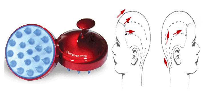 * 두피 크리닉 약품을 머리에 바르고 두피에 약품 침투를 용이하게 본제품을 이용하여 마사지를 한다.